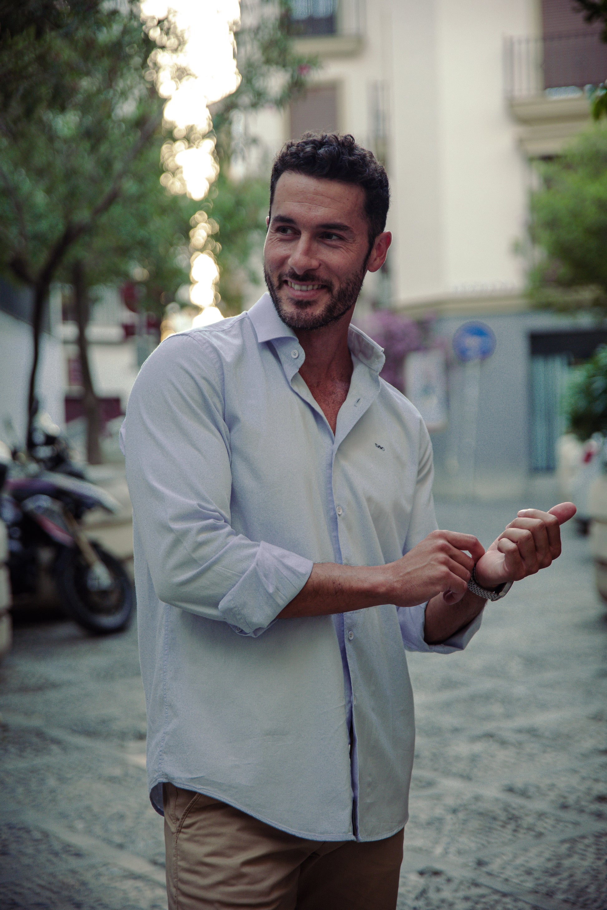 Camisa CELESTE de Algodón 100 por 100 con cuello italiano y botonadura oculta. Este tipo de camisa es perfecta para lucir con chinos, chaqueta o un look más informal.